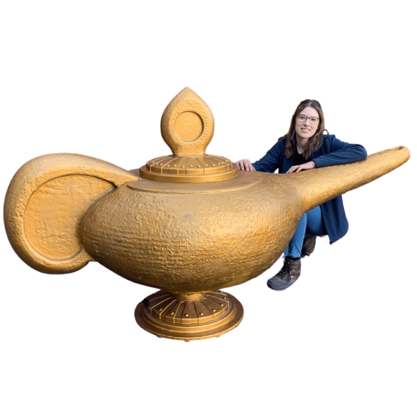 Idéale pour des ambiances orientales, fantastiques, cinéma, enfance ou conte revisité, cette lampe du génie géantetrouve sa place dans des décors événementiels immersifs : salons professionnels, stands à thème, plateaux de tournage ou espaces de réception éphémères. Elle s’intègre aussi bien dans des compositions orientales que dans des mises en scène ludiques ou décalées.